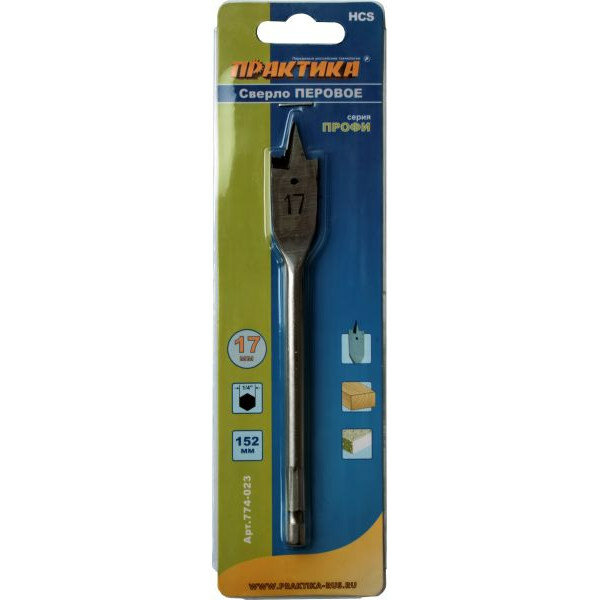 На сегодняшний день товар «Перовое сверло по дереву ПРАКТИКА 774-023 17x152мм перовое» можно купить с кешбеком в 1 магазине: Яндекс.Маркет