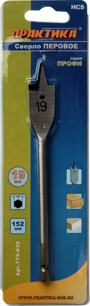 Перовое сверло по дереву ПРАКТИКА 774-030 19x152мм перовое