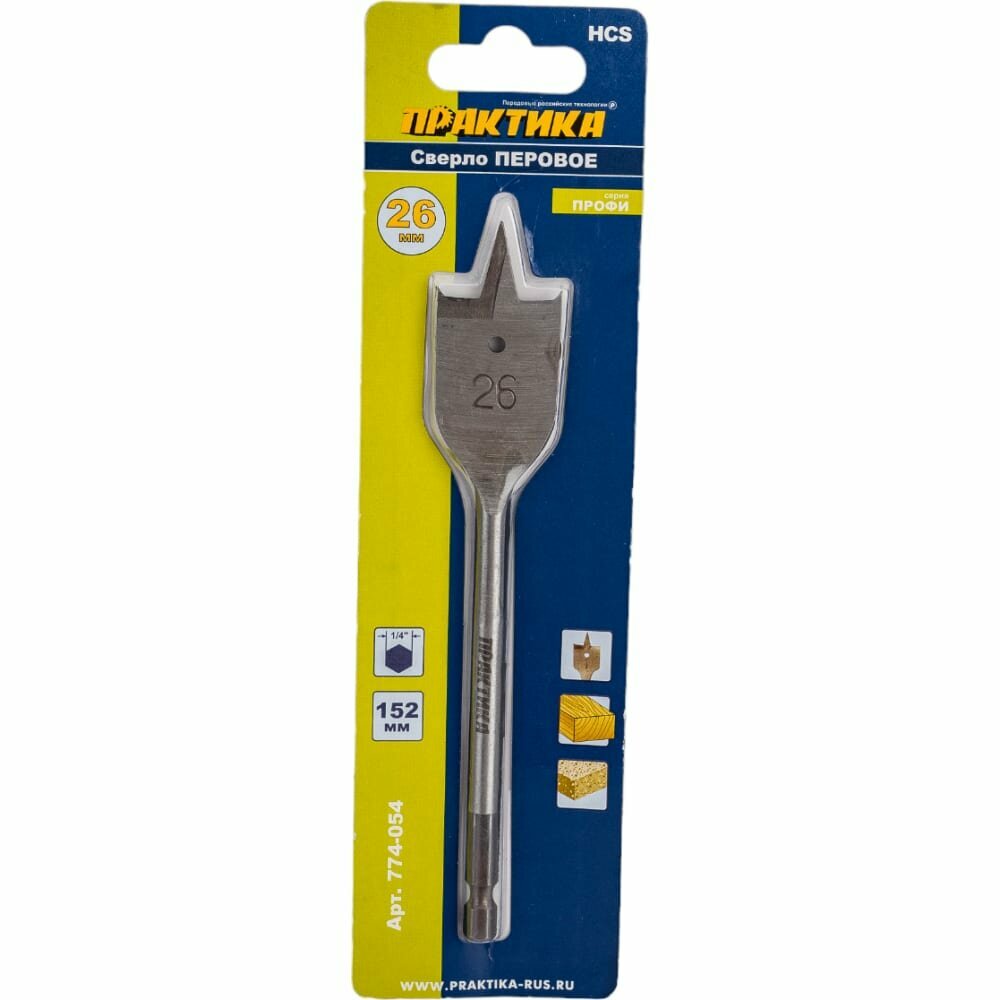 Перовое сверло по дереву ПРАКТИКА 774-054 26x152мм перовое
