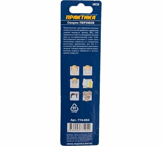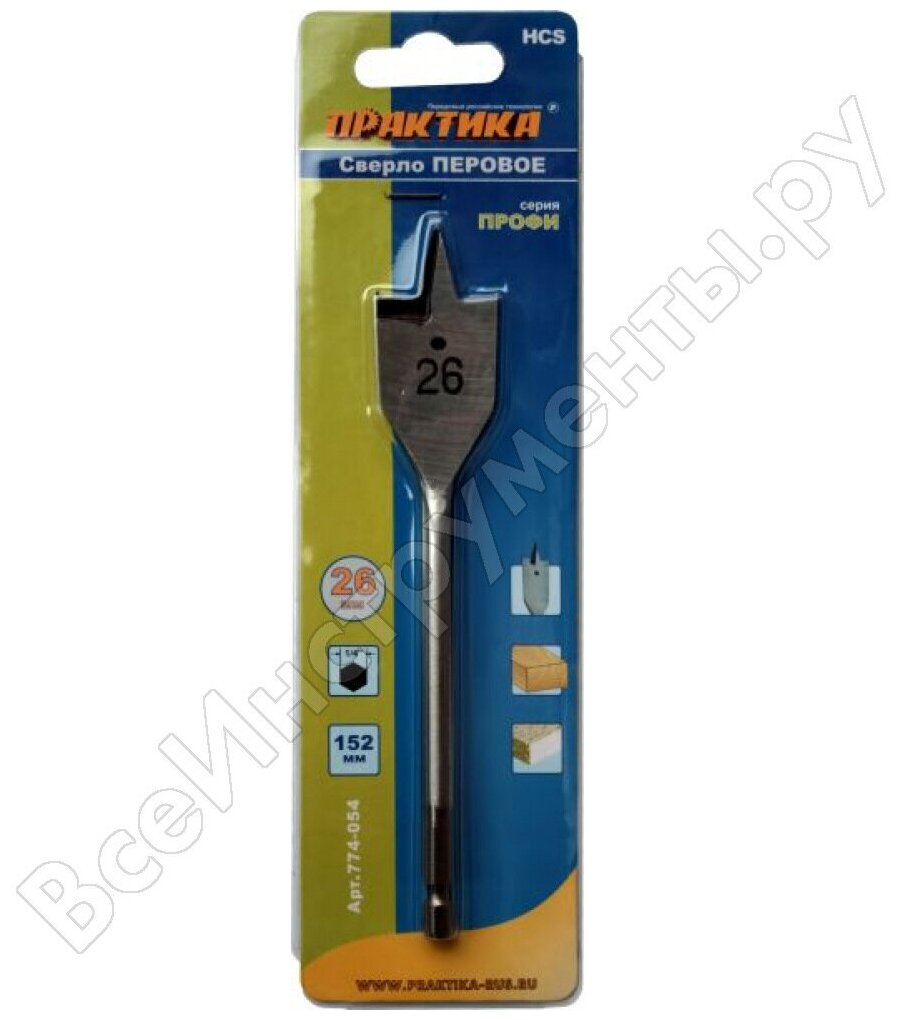 На сегодняшний день товар «Перовое сверло по дереву ПРАКТИКА 774-054 26x152мм перовое» можно купить с кешбеком в 1 магазине: Яндекс.Маркет
