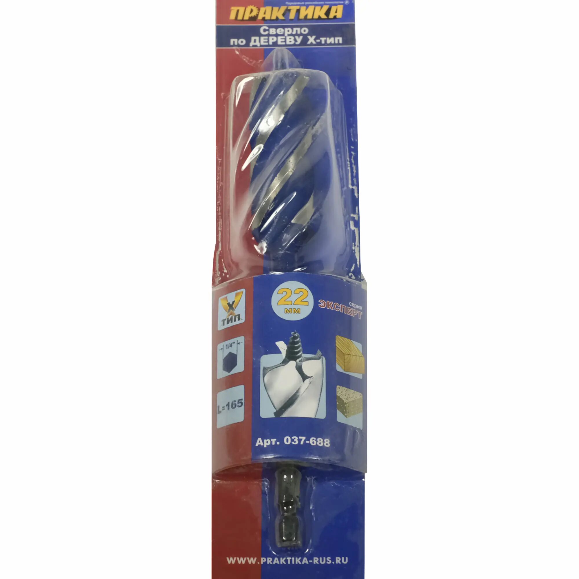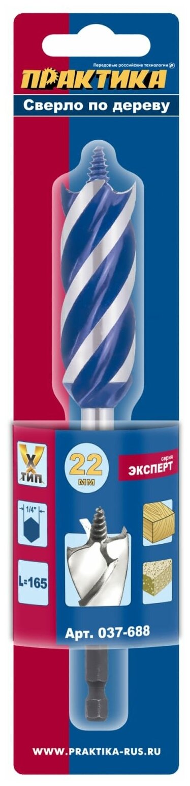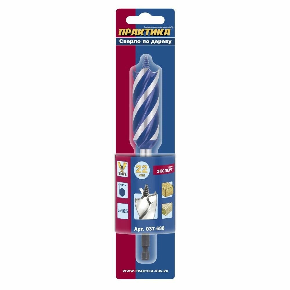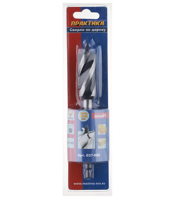 Сверло по дереву ПРАКТИКА 037-688 22x165мм 3-х заходное по дереву