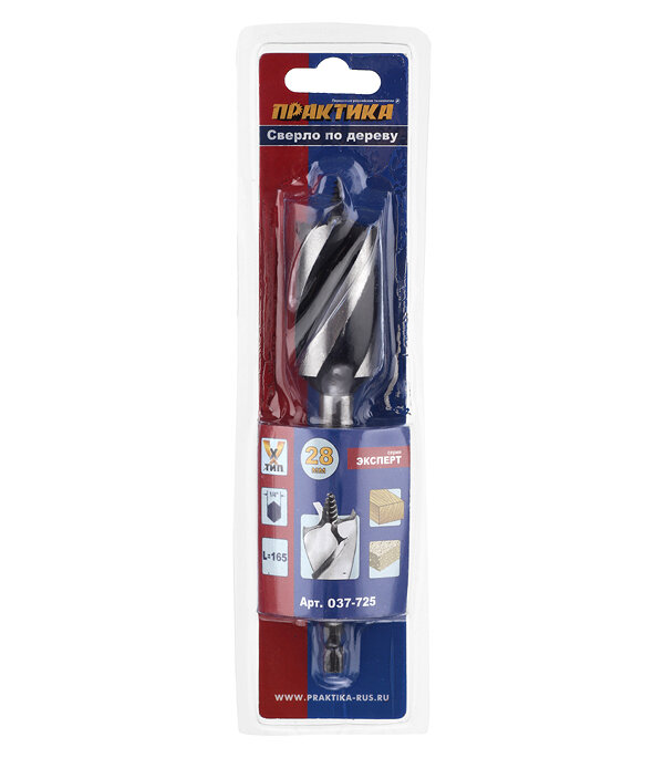 Сверло по дереву ПРАКТИКА 037-725 28x165мм 3-х заходное по дереву