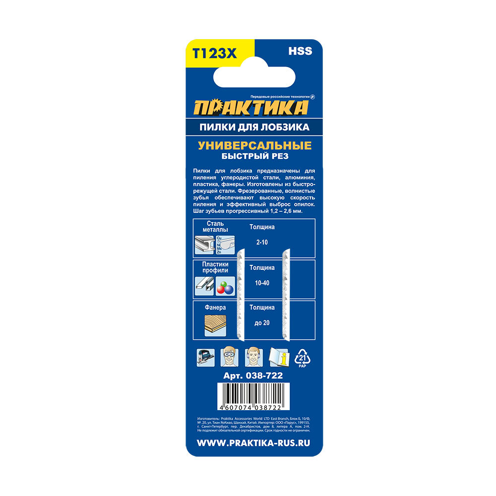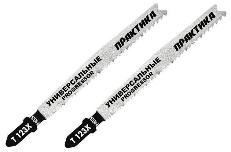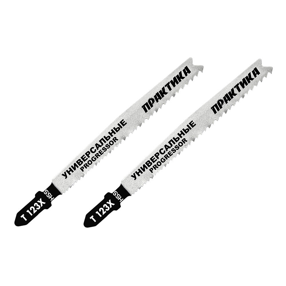 Пилки для лобзика универсальные ПРАКТИКА, тип T123X, 100 х 75 мм, грубый рез, HSS, 2 штуки в упаковке.