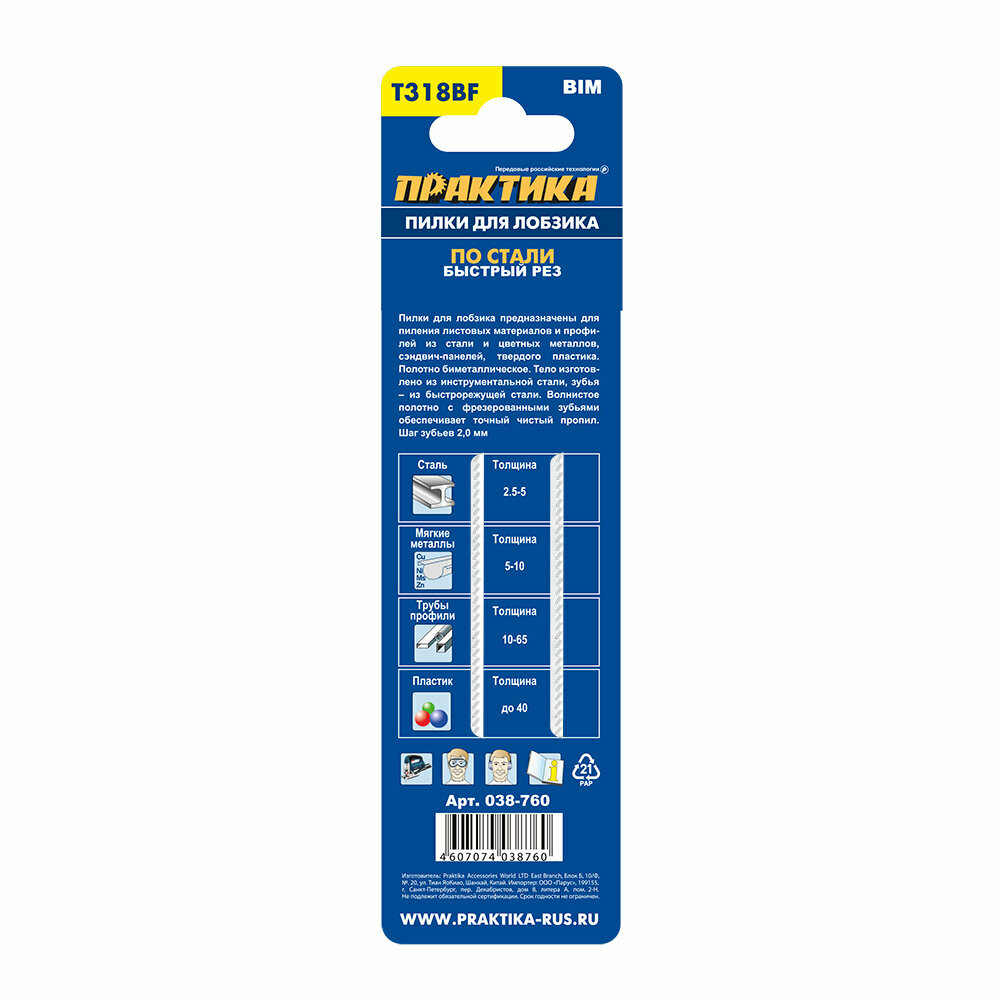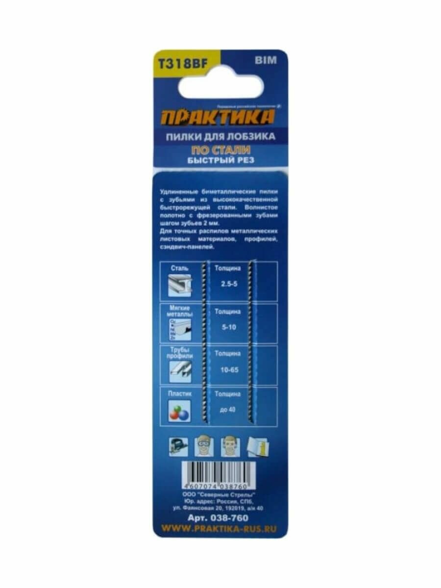 Пилки для лобзиков по металлу ПРАКТИКА 038-760 t318bf 2шт.