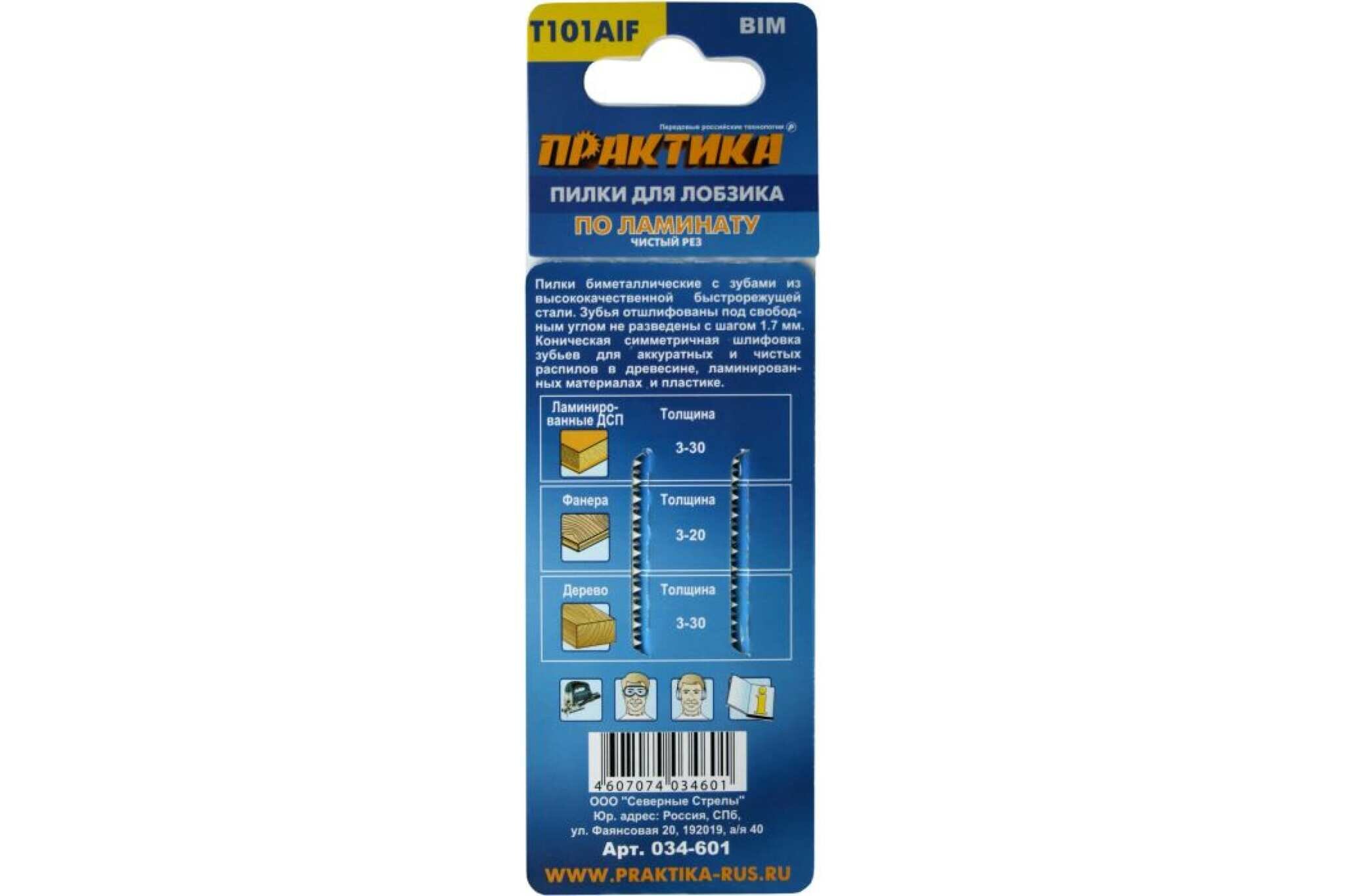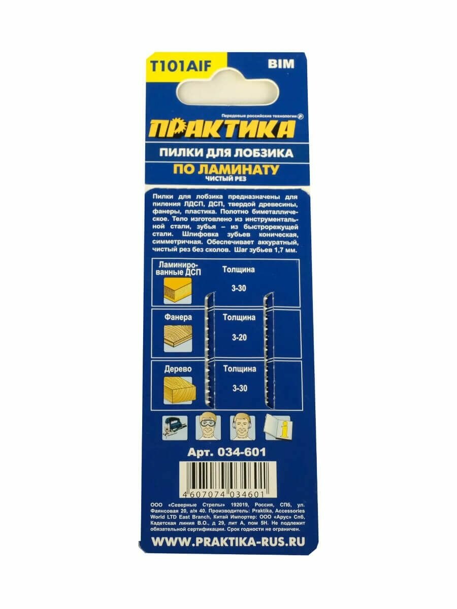 Пилки для лобзиков по ламинату ПРАКТИКА 034-601 t101aif 2шт.