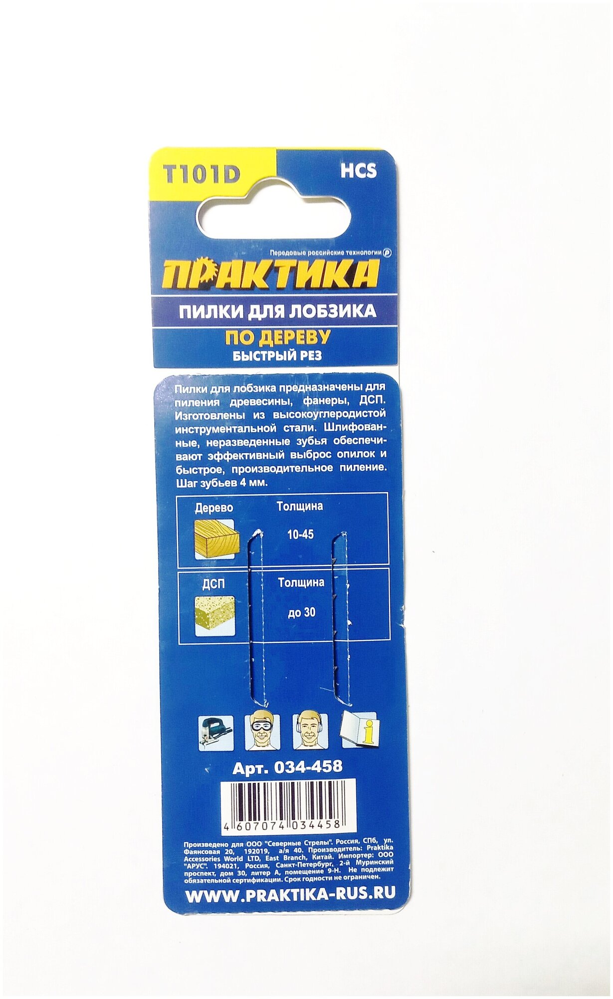 Пилки для лобзиков ПРАКТИКА 034-458 t101d 2шт.
