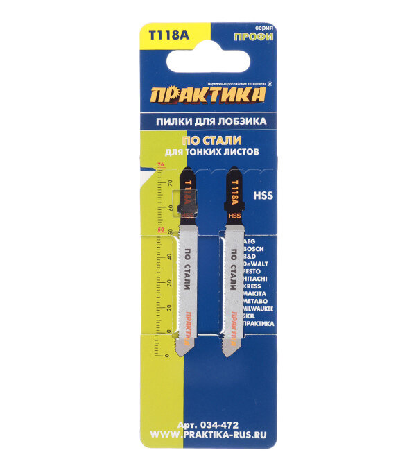 | Наименование модели | пилка по металлу для лобзика 034-472 |