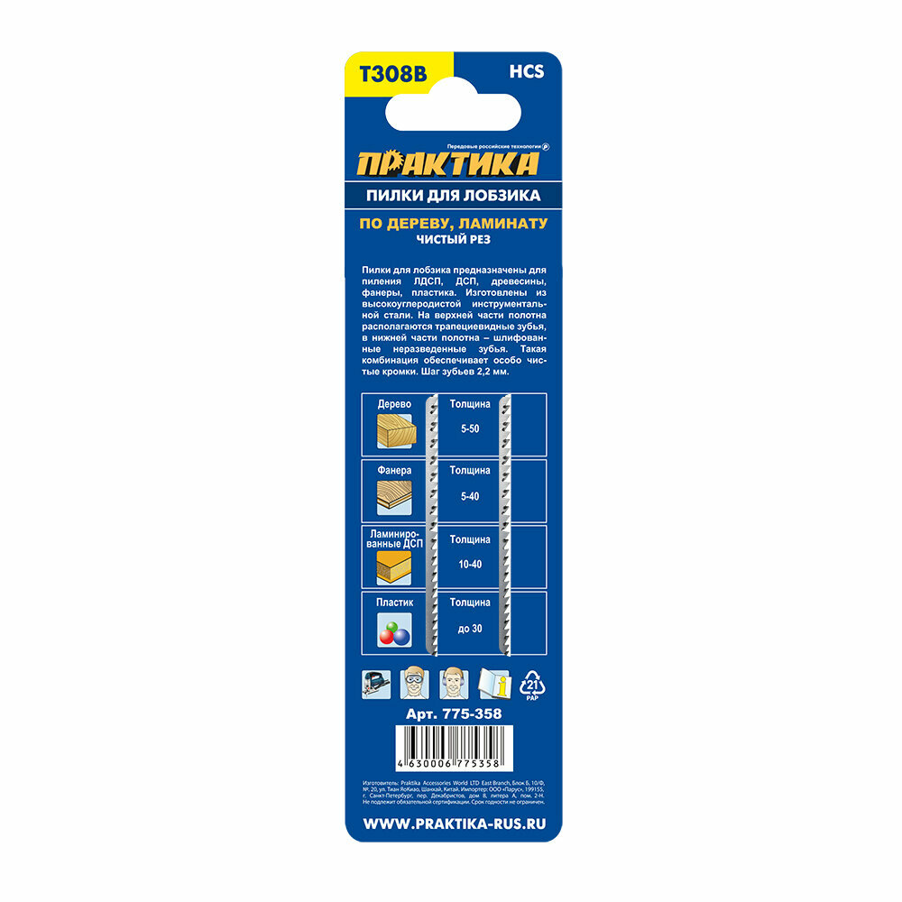 Пилки для лобзиков ПРАКТИКА 775-358 t308b 2шт.