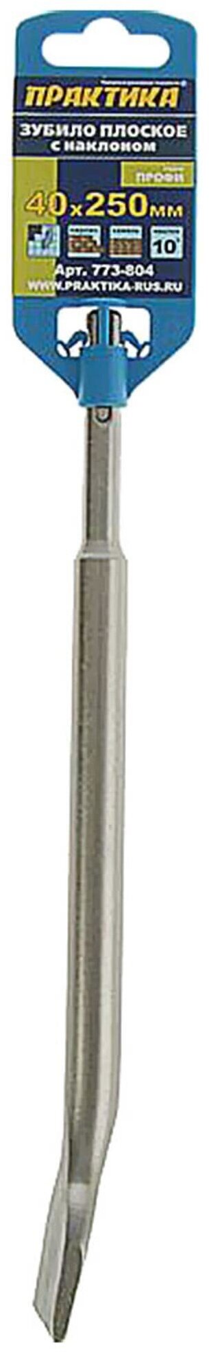 Зубило 40х250 мм от российской торговой марки ПРАКТИКА оснащено плоской формой и предназначено для установки в перфораторы с патроном типа SDS-plus. Его можно использовать в инструменте легкого и среднего класса для осуществления разнообразных работ по демонтажу: скалыванию керамической плитки, сбиванию штукатурки и других настенных покрытий. Угол наклона 10 градусов обеспечивает комфортное выполнение задачи без дополнительного крена перфоратора.