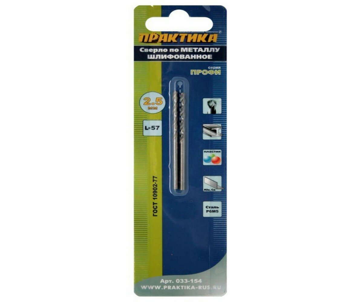 Сверло по металлу ПРАКТИКА 033-154 2.5х57мм, 2шт.