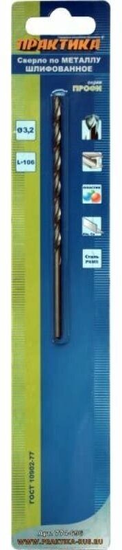 Удлиненное сверло по металлу ПРАКТИКА 774-696 3.2х100мм удлиненное