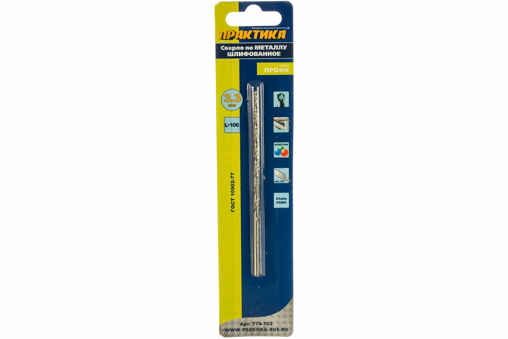 Сверло по металлу ПРАКТИКА 774-702 3.3х106мм удлиненное