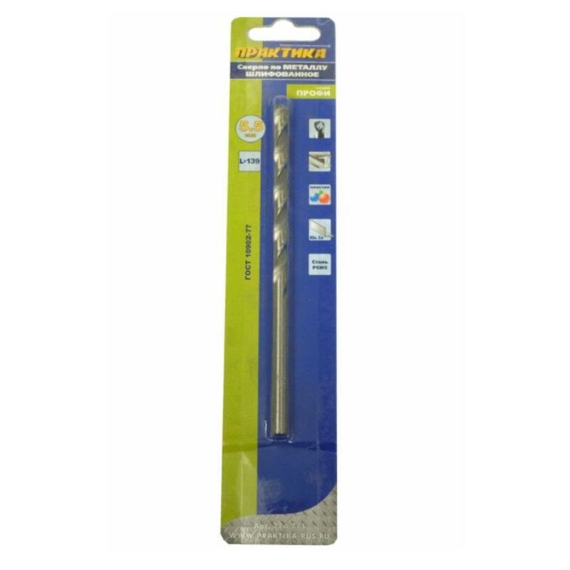 Сверло по металлу удлиненное ПРАКТИКА Р6М55.5 х 139 мм (1шт.) блистер-удлиненное шлифованное сверло по металлу, изготовлено из стали Р6М5. Угол заточки острия сверла 118 градусов, подходит для обработки металлов с пределом прочности до 900 Н/мм. При сверлении рекомендуется использовать смазочно-охлаждающую жидкость. Сверло поставляется в индивидуальной упаковке блистере, в упаковке 1 штука.