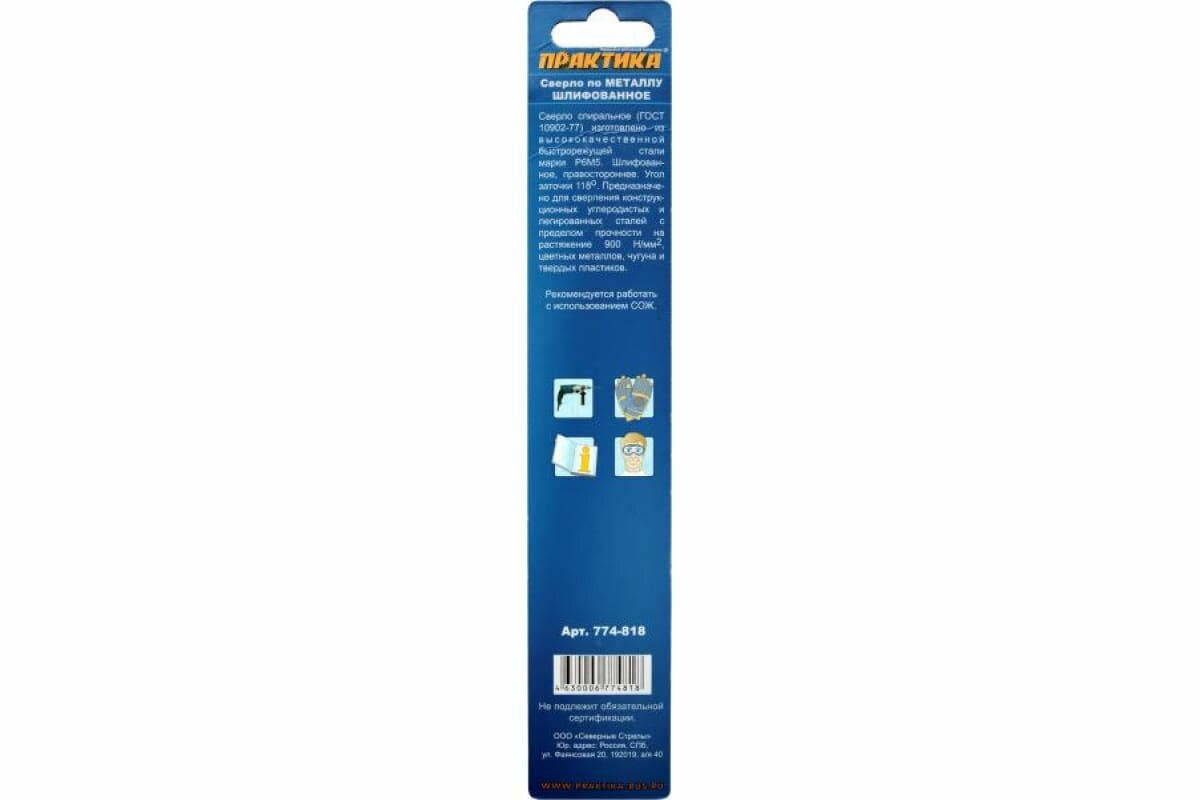 Сверло по металлу удлиненное ПРАКТИКА Р6М57,5 х 156 мм (1шт.) блистер-удлиненное шлифованное сверло по металлу, изготовлено из стали Р6М5. Угол заточки острия сверла 118 градусов, подходит для обработки металлов с пределом прочности до 900 Н/мм. При сверлении рекомендуется использовать смазочно-охлаждающую жидкость. Сверло поставляется в индивидуальной упаковке блистере, в упаковке 1 штука.
