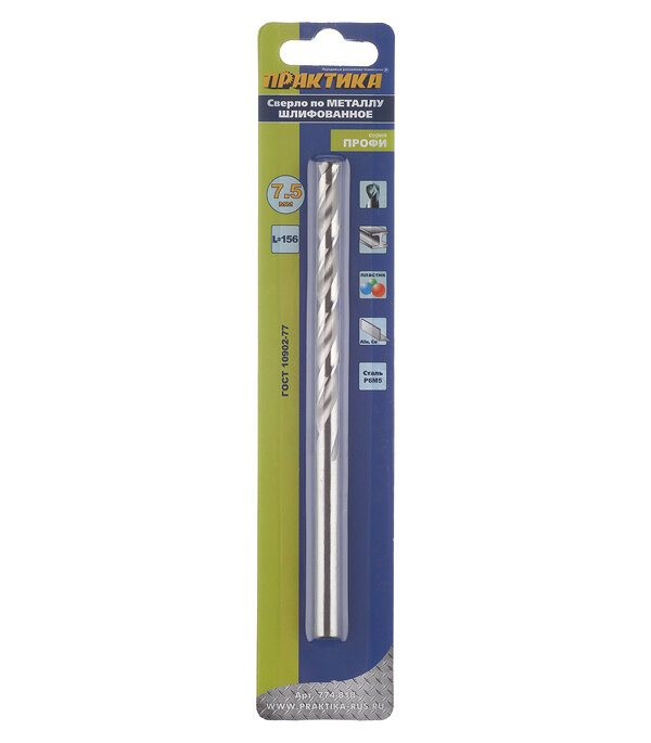 Сверло по металлу ПРАКТИКА 774-818 7.5х156мм удлиненное
