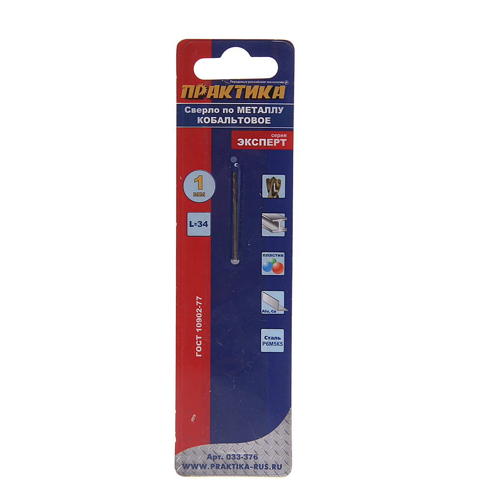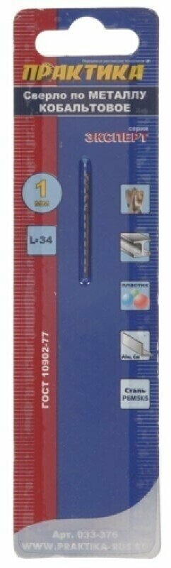 Сверло по металлу ПРАКТИКА 033-376 1.0х34мм кобальтовое