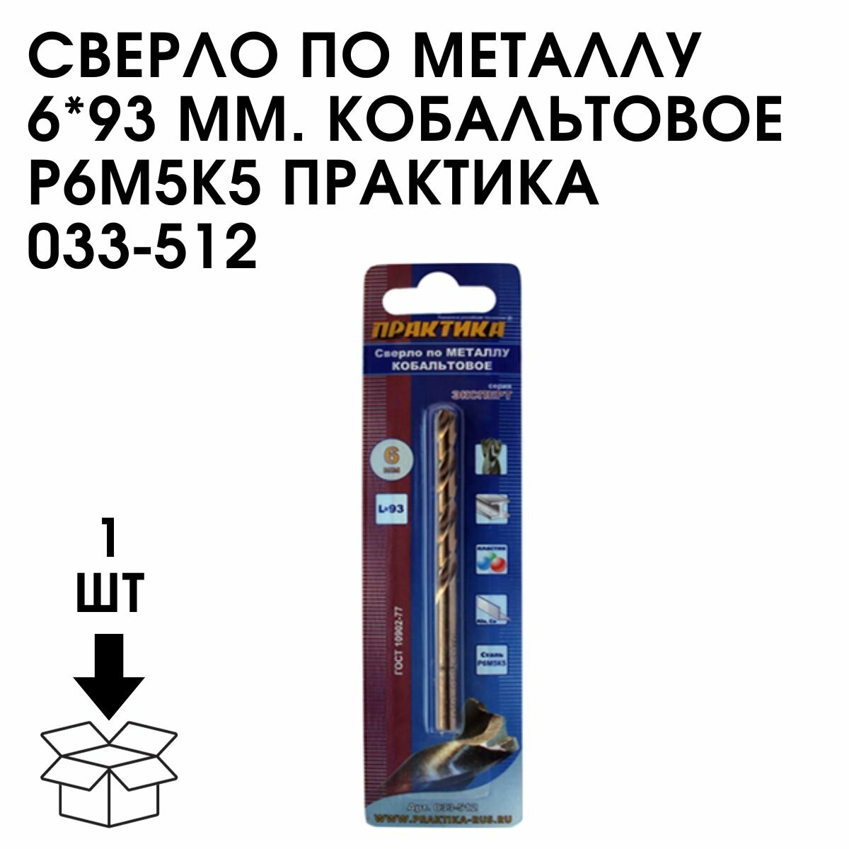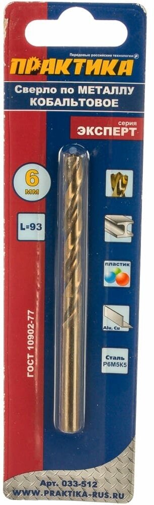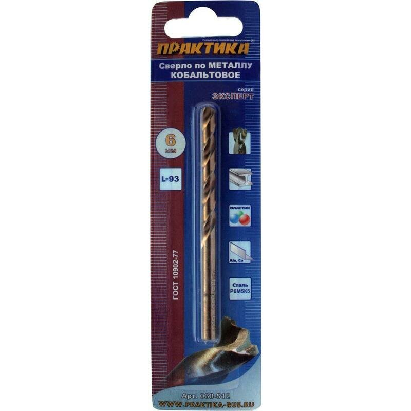 Кобальтовое сверло по металлу ПРАКТИКА 033-512 6.0х93мм кобальтовое