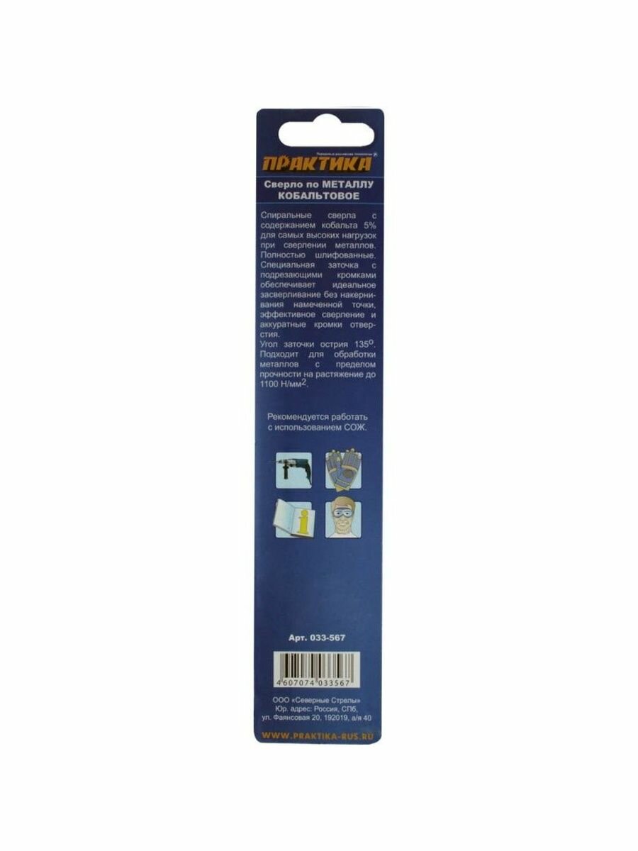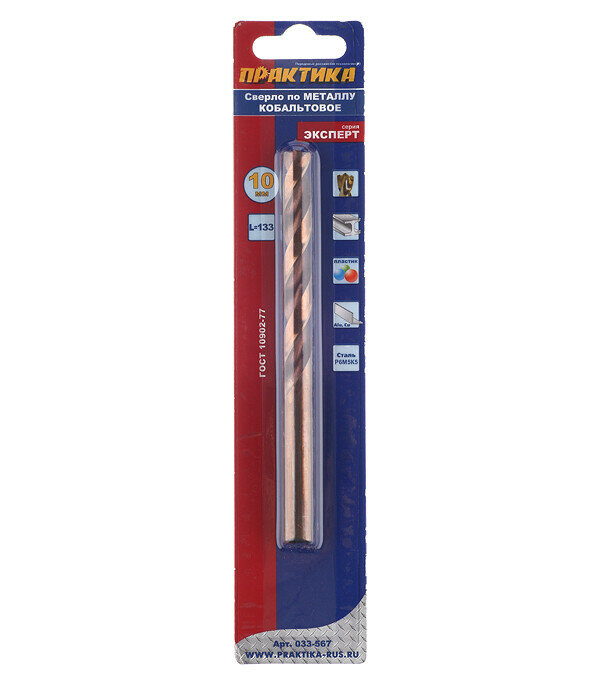 Кобальтовое сверло по металлу ПРАКТИКА 033-567 10.0х133мм кобальтовое