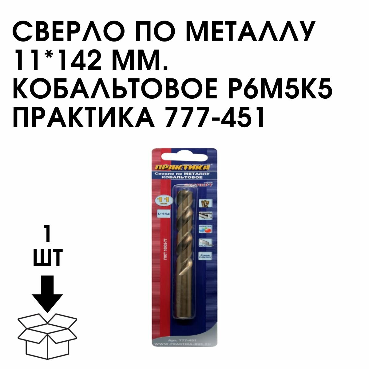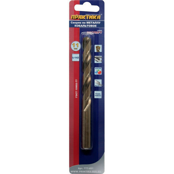 Сверло по металлу ПРАКТИКА 777-451 11.0х142мм кобальтовое