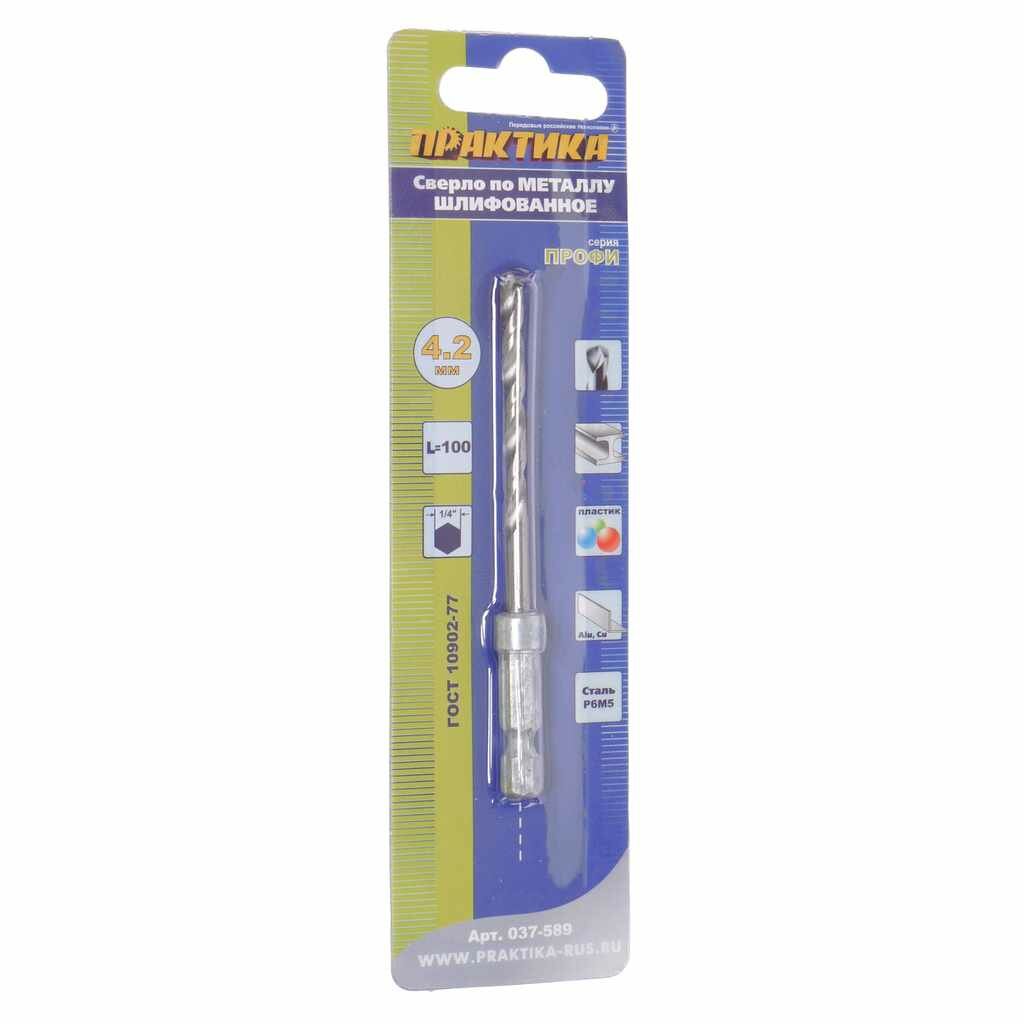 Сверло по металлу ПРАКТИКА 037-589 4.2х100мм, hex 1/4''