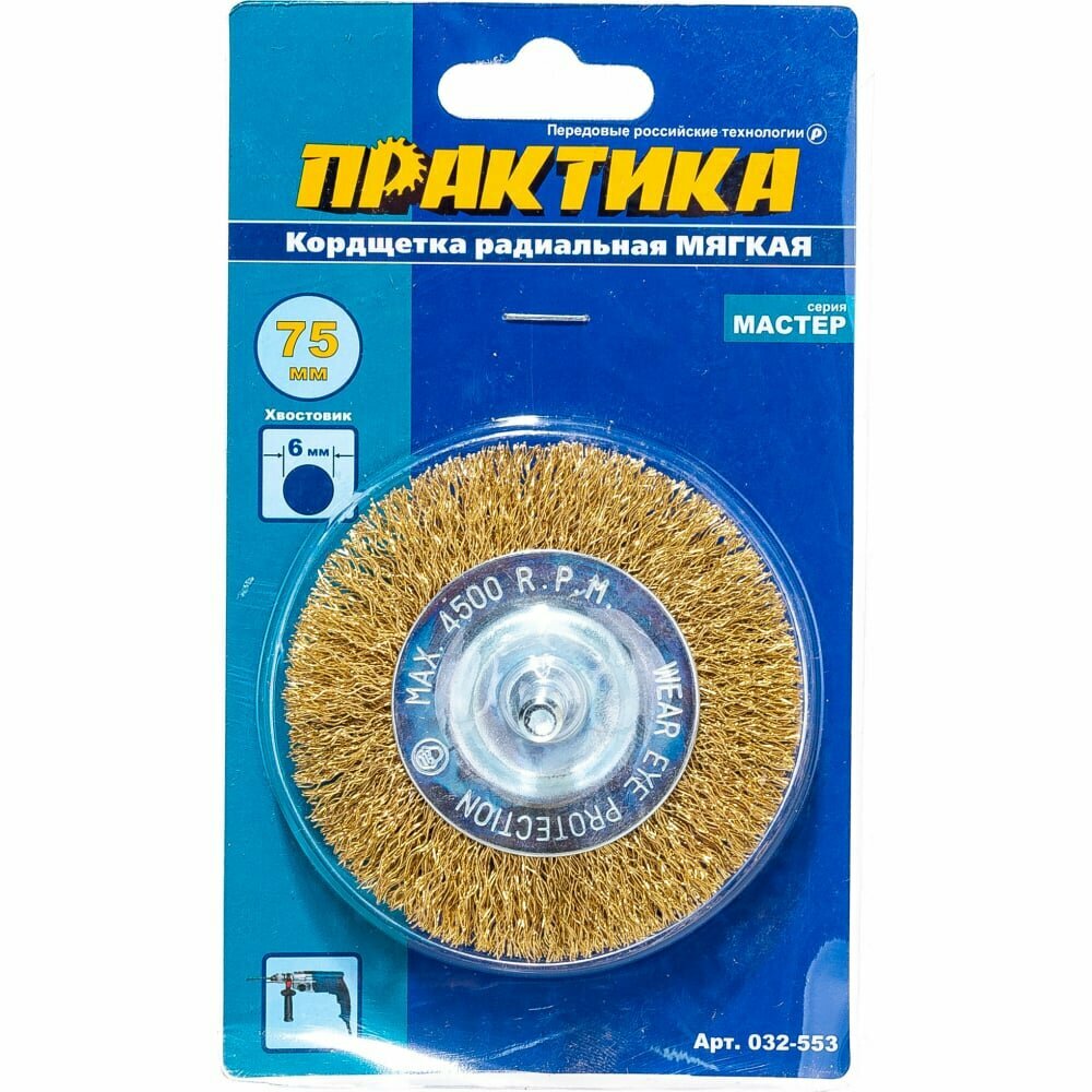 Радиальная корщетка для дрели ПРАКТИКА 032-553 75мм, радиальная мягкая для дрели