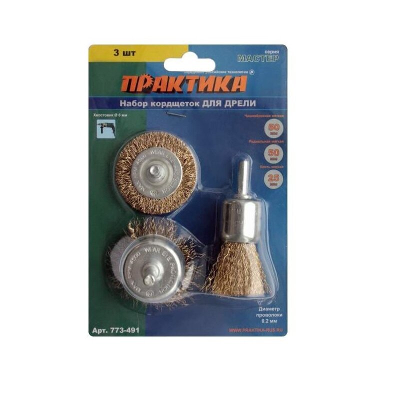 Набор кордщеток для дрели ПРАКТИКА 773-491 набор 3шт. для дрели