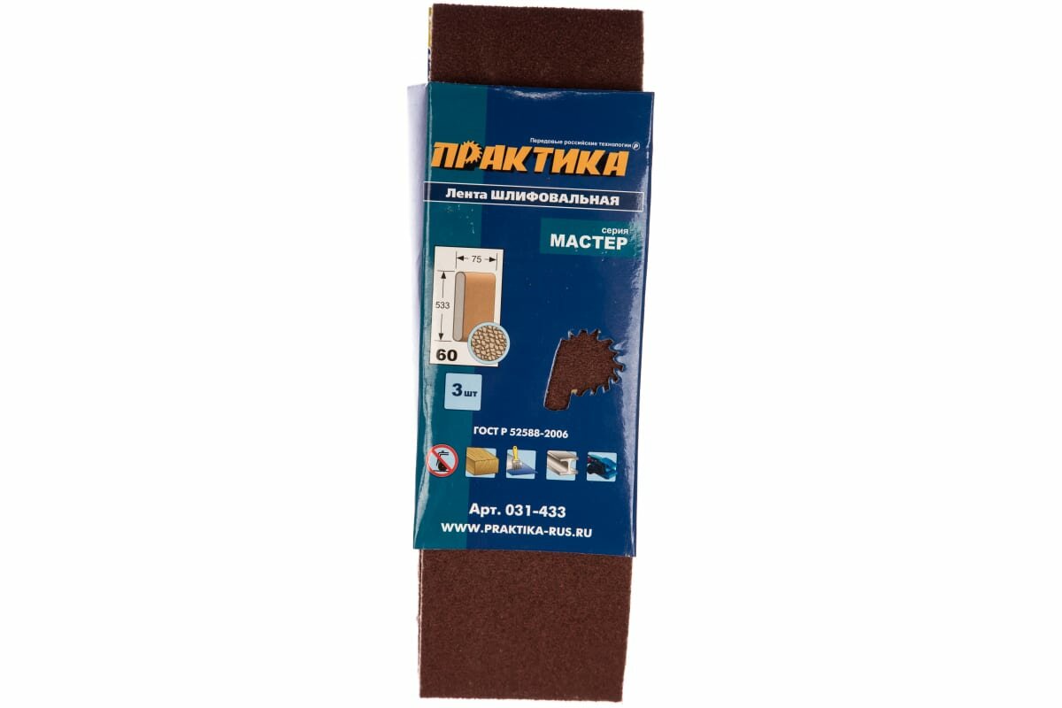 Шлифовальная лента ПРАКТИКА 031-433 75х533мм, p60, 3шт.