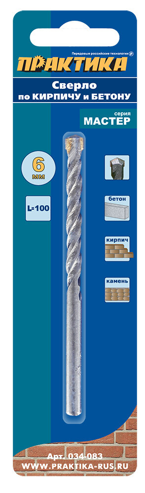 Сверло по бетону ПРАКТИКА 034-083 6х100мм, серия Мастер