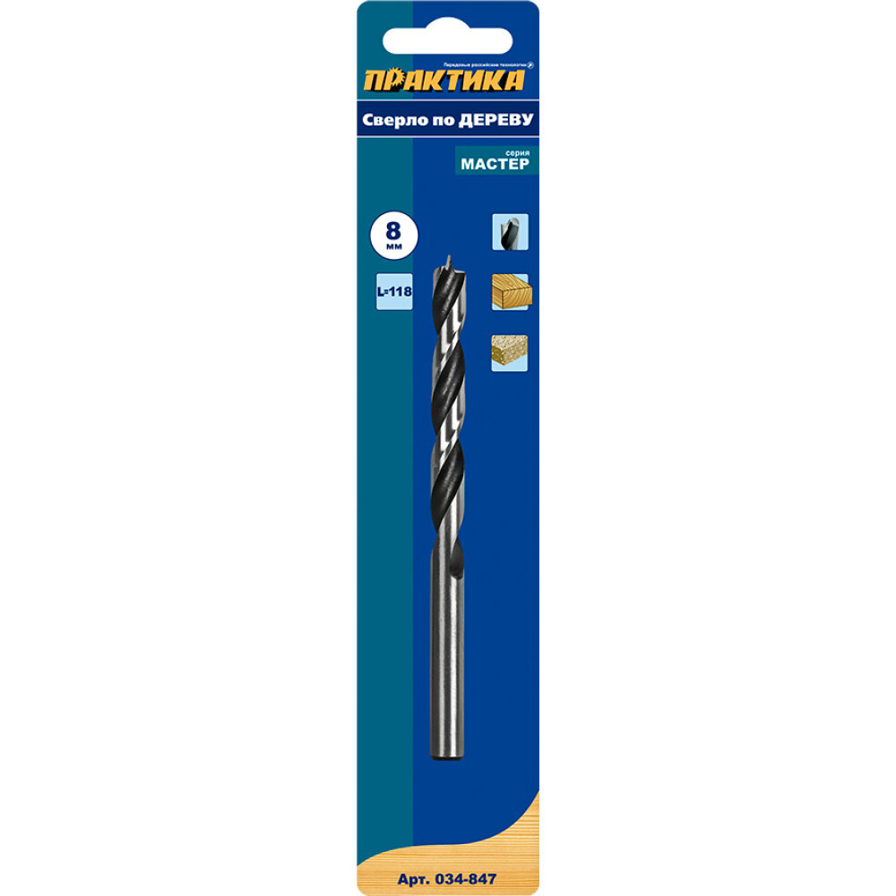 Сверло по дереву ПРАКТИКА 034-847 8х117мм, серия Мастер