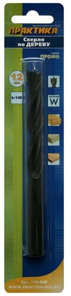 Сверло по дереву ПРАКТИКА 775-648 12х140мм, серия Профи