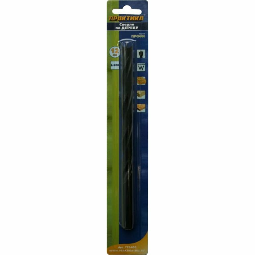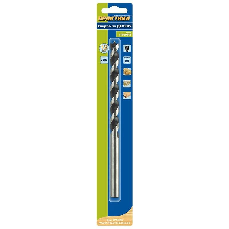 Сверло по дереву ПРАКТИКА 775-655 12х200мм, удлиненное, серия Профи