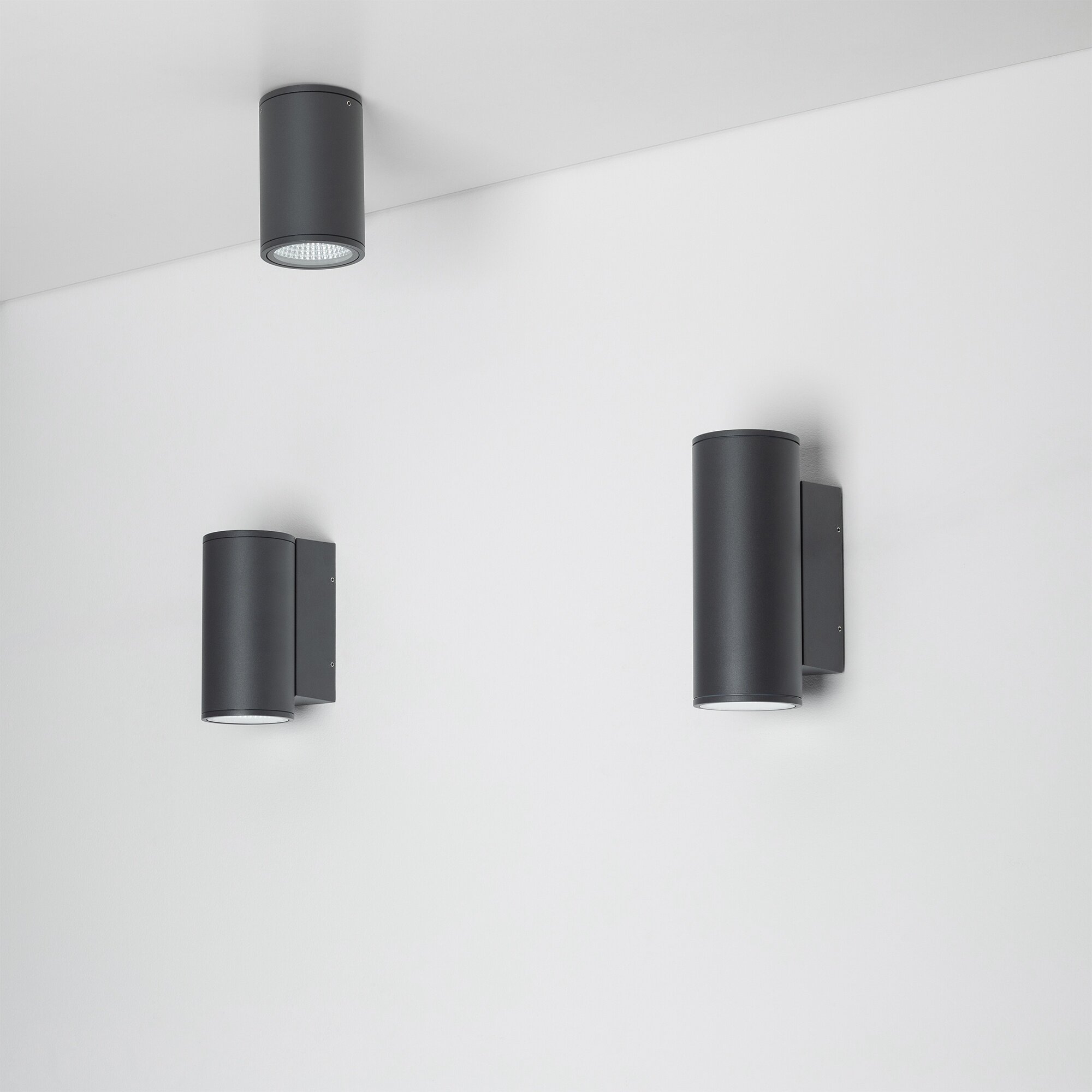 Накладной настенный светильник 2x12Вт, серый алюминиевый корпус, оптическое закаленное стекло. Цвет ТЕПЛЫЙ БЕЛЫЙ 2700K, св.поток 1720лм, CRI(Ra)>80, угол 44°, свет вверх-вниз. Размер 133x90x220мм. IP54. Питание AC230V, 24Вт, встроенный драйвер.