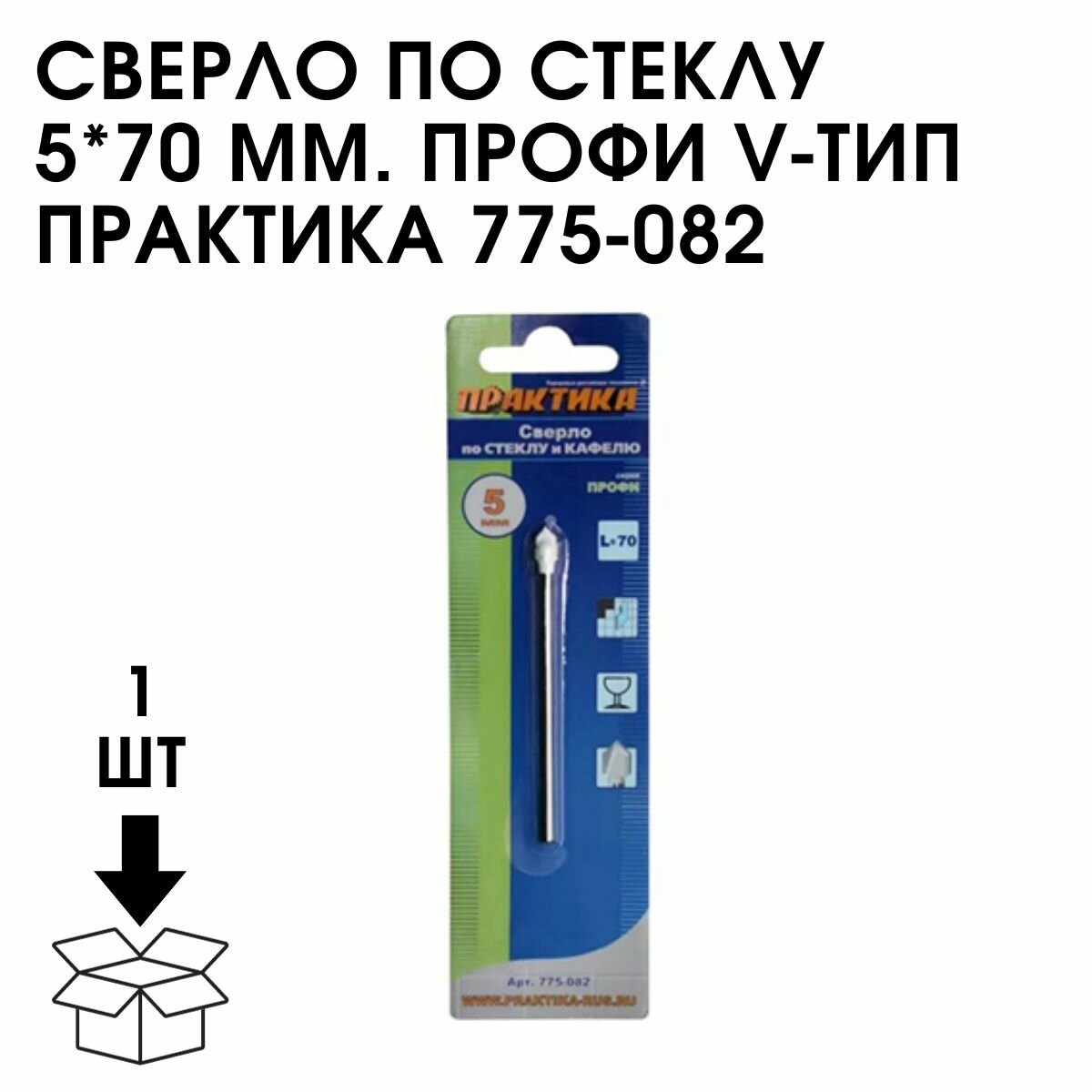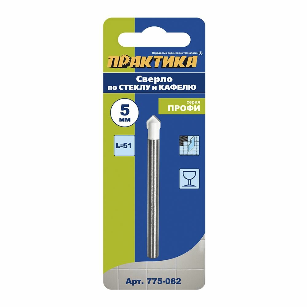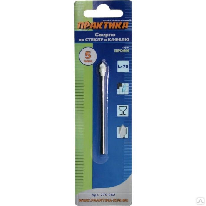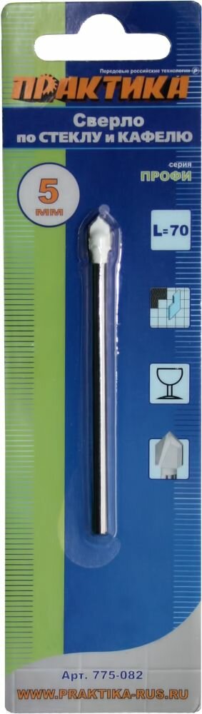 Сверло по стеклу и кафелю ПРАКТИКА 775-082 5х70мм, v-тип