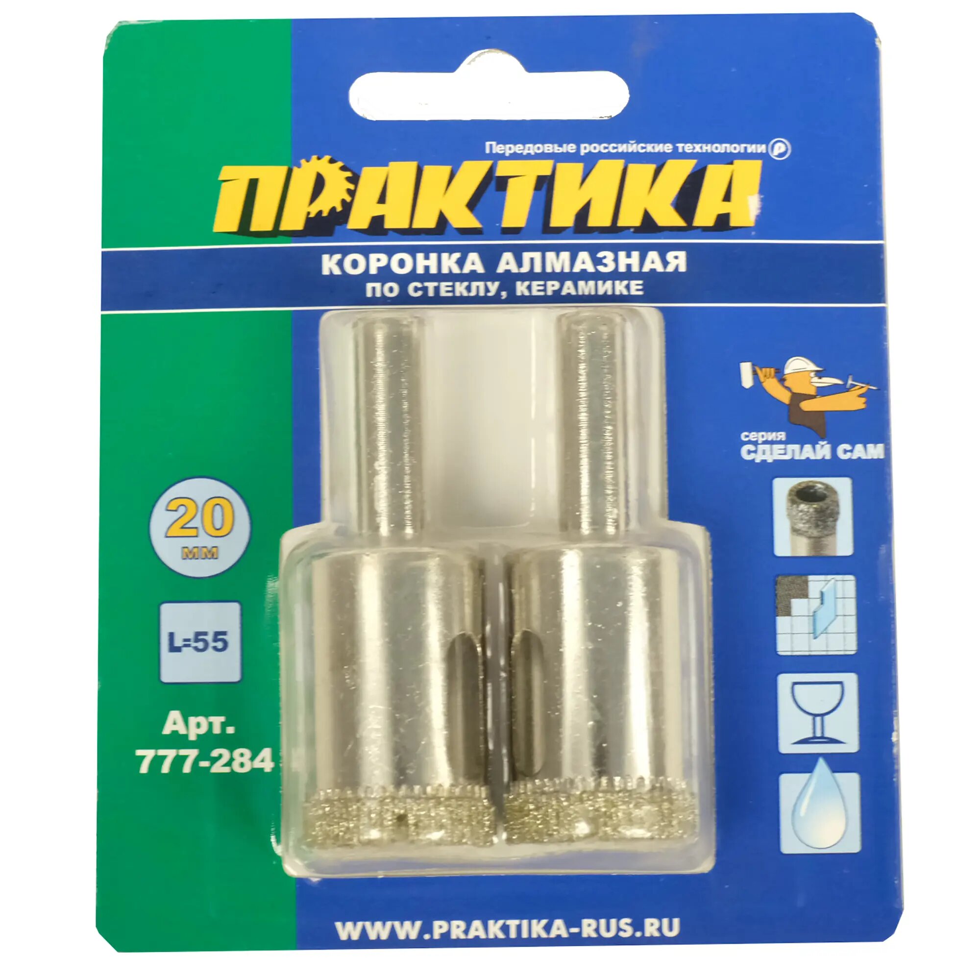 Алмазное сверло по стеклу и керамике ПРАКТИКА 777-284 20мм, 2шт., по стеклу и керамике