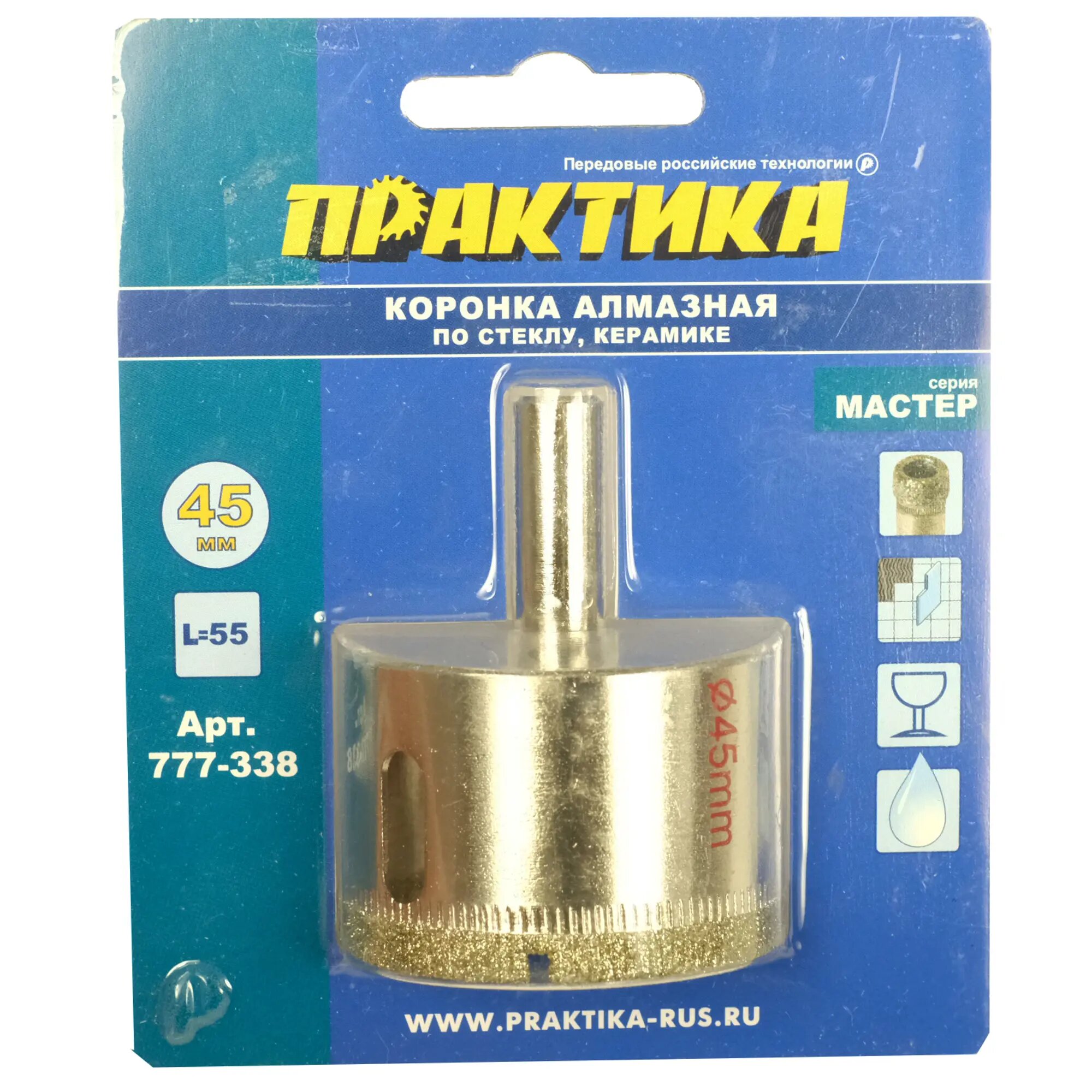 Алмазная коронка по стеклу и керамике ПРАКТИКА 777-338 45мм, 1шт., по стеклу и керамике