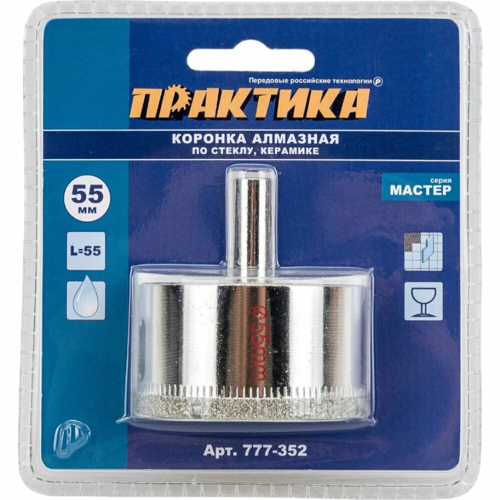 Алмазная коронка по стеклу и керамике ПРАКТИКА 777-352 55мм, 1шт., по стеклу и керамике