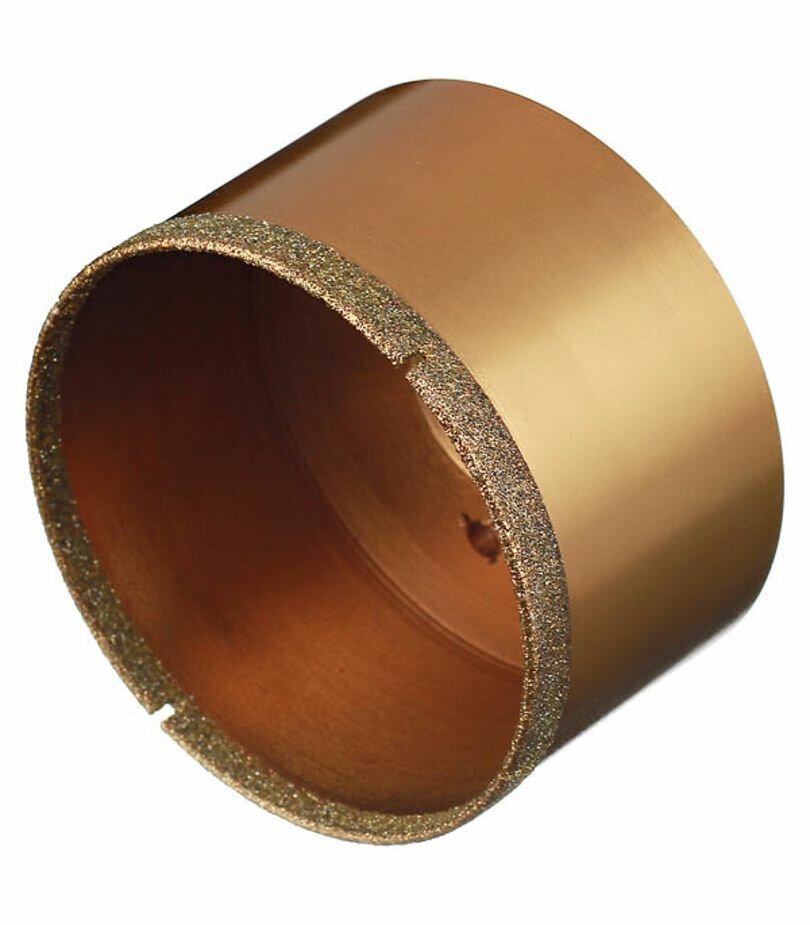 При работе использовать охлаждение водой. Безударное сверление. Представляют из себя алмазное трубчатое сверло. Особенно подходят для сверления керамогранита, облицовочной плитки, стекла, бетона, кирпича, камня. Наилучшая производительность достигается при работе аккумуляторной дрелью.