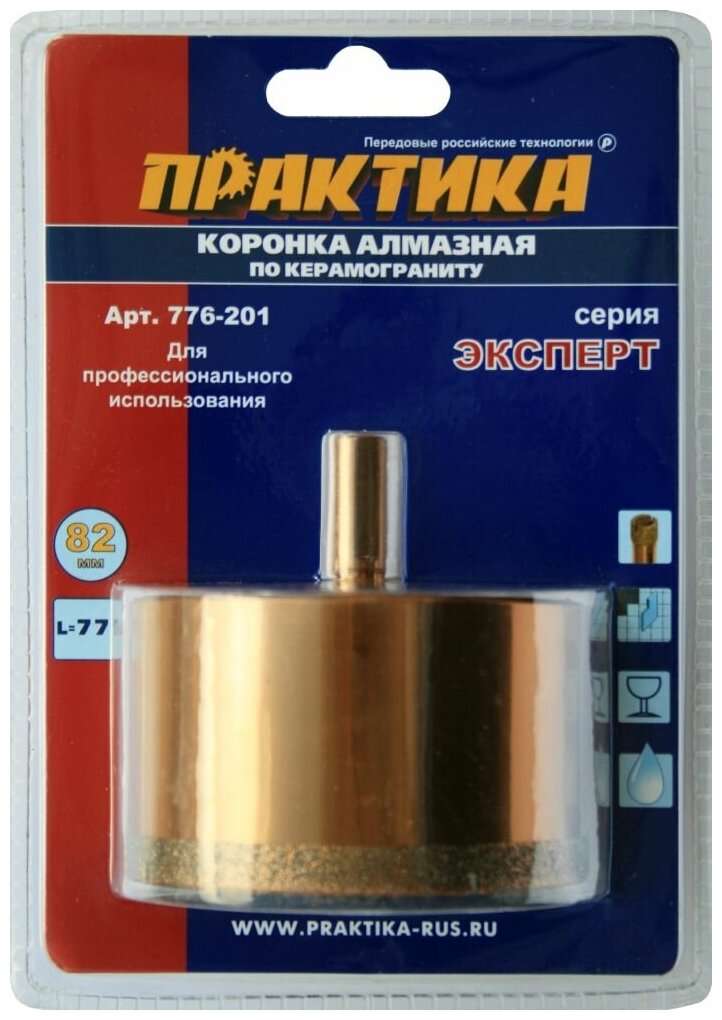 Алмазная коронка по керамограниту ПРАКТИКА 776-201 82мм по керамограниту