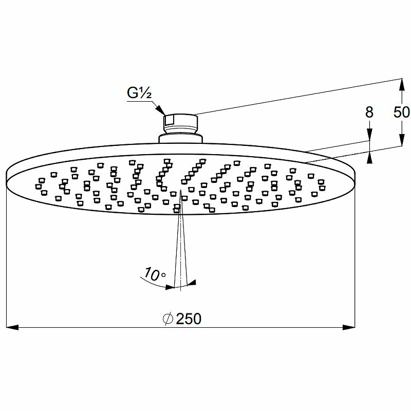 - Диаметр верхнего душа: 250 мм.