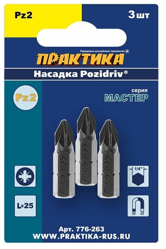 Биты ПРАКТИКА 776-263 pz2 25мм, Мастер, 3шт.