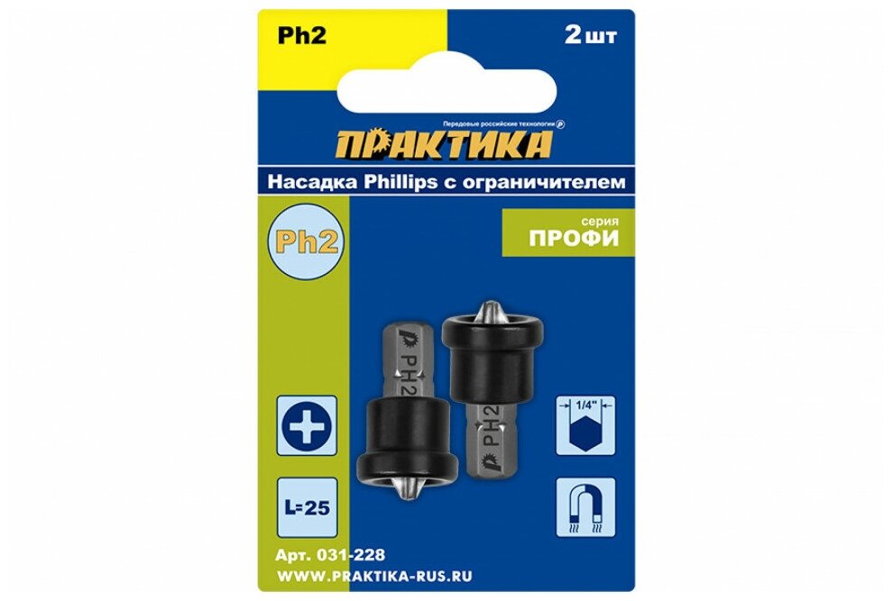 Бита ПРАКТИКА 031-228 ph2 25мм, 2шт., с ограничителем