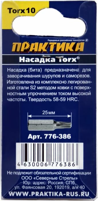 Бита ПРАКТИКА 776-386 t10 25мм, Профи, 2шт.