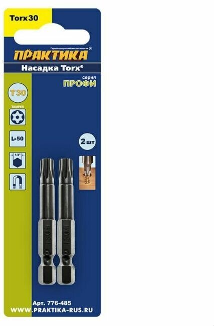 Бита ПРАКТИКА 776-485 t30 50мм, Профи, 2шт.