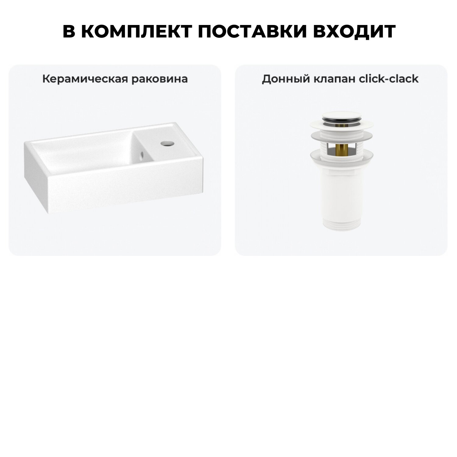 Комплексное предложение по специальной цене от Wellsee. Все составляющие набора проходят деликатные апгрейды для достижения абсолютной гигиены, надежности монтажных элементов и максимального удобства в пользовании.КЕРАМИЧЕСКАЯ РАКОВИНАСтильная мини-раковина Wellsee WC Area, на бортике которой расположено стандартное отверстие под смеситель и остается небольшое место для гигиенических средств, удобна для мытья рук и гигиенических процедур, а ее малый вес существенно облегчает монтаж. Компактные размеры модели станут оптимальным решением для помещений с ограниченным пространством и туалетных комнат.Раковины Wellsee производятся по технологии шликерного литья с использованием натуральной глины и кварца и последующим обжигом заготовки при температуре 1250°С, что исключает образование пузырьков, пустот или трещин в готовом изделии, а также гарантирует соблюдение заданных размеров чаши. В результате формируется плотная структура, которая придает умывальнику дополнительную прочность даже в наиболее уязвимых местах.В состав сверхпрочного декоративного покрытия CeramicTop ® включен кристаллический минерал AL203 неотъемлемый элемент драгоценных камней. Благодаря грязеотталкивающему слою минералов и повышенным антиадгезионным свойствам поверхность раковины не впитывает грязь и известковый налет, обеспечивая высокий уровень гигиены, сохраняя исключительную белизну и ощущение свежести в ванной комнате.ВАННАЯ КОМНАТА В СТИЛЕ WELLSEEДизайнерская сантехника изготовлена в едином стиле: изделия прекрасно дополняют друг друга и формируют органичный тандем с латунными сифонами, донными клапанами, выпусками, угловыми вентилями и элегантными аксессуарами. Завершить современный интерьер ванной комнаты можно элегантными зеркалами из коллекции-бестселлера 7 Rays' Spectrum.Гарантируем 100% качество и целостность изделий комплекта.Комплектация:1 х керамическая раковина, арт. 151801000 (размер 40*22 см, цвет глянцевый белый); 1 х декоративная заглушка на отверстие перелива (цвет хром); 1 х донный клапан для раковины, арт. 182133000 (цвет матовый белый); 1 х крепежный комплект для настенного монтажа; 1 х инструкция по монтажу и эксплуатации; 1 х гарантийный талон.Внимание! Пожалуйста, посмотрите все изображения к товару и найдите фото, помогающее правильно определить угол поворота. Данная модель с правым R-разворотом. Пожалуйста, убедитесь в правильности выбора нужной стороны.