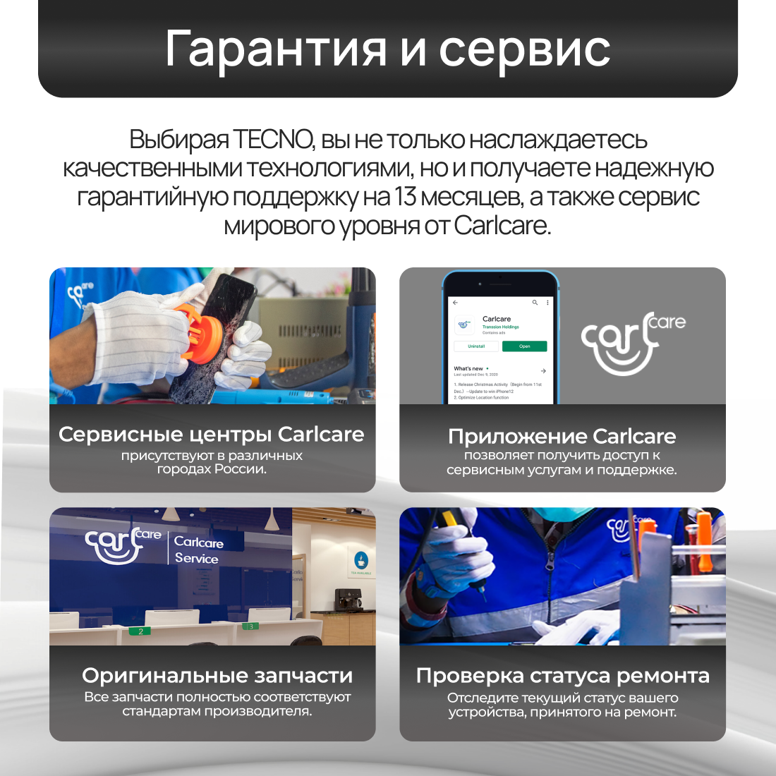 Tecno Spark Go 1 отличается элегантным внешним видом. Корпус выполнен в белом цвете с блестящими элементами. Смартфон удобно лежит в руке благодаря эргономичному дизайну и гладким поверхностям.