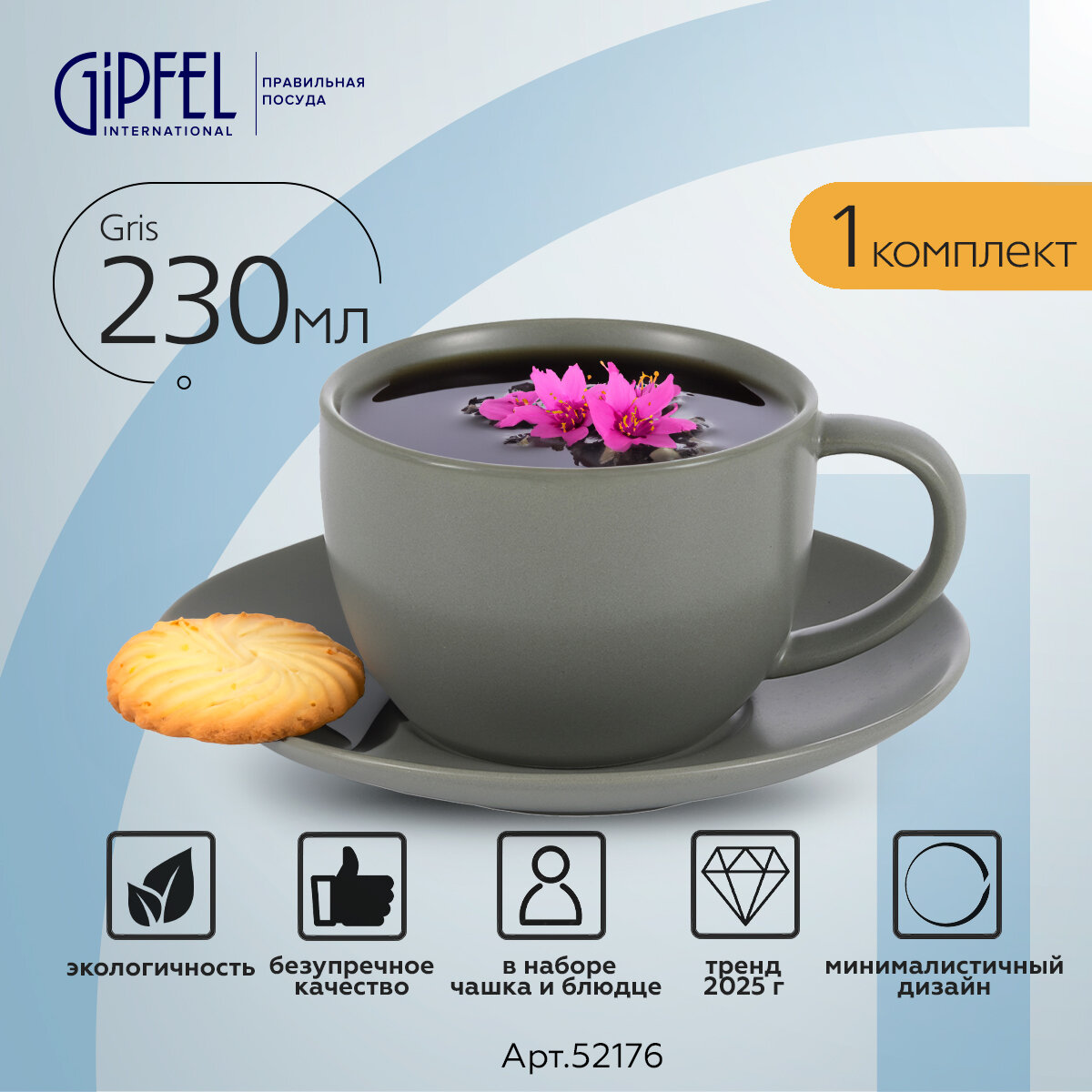 Чайная пара Gipfel Gris 52176, чашка объемом 230 мл, блюдце диаметром 15 см.