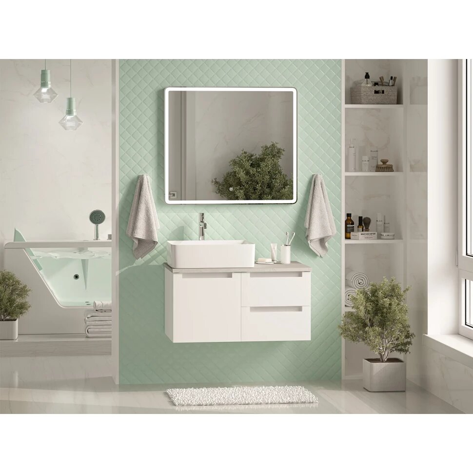 Тумба со столешницей Brevita Cargo 80 подвесная 2 ящика 1 дверца белая CAR-01080-011П2Я
