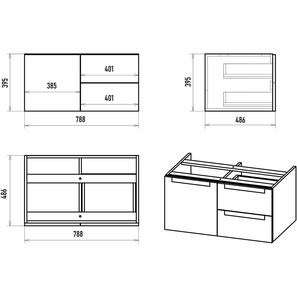 - Габариты корпуса тумбы (ШхВхГ): 788х395х486 мм.
