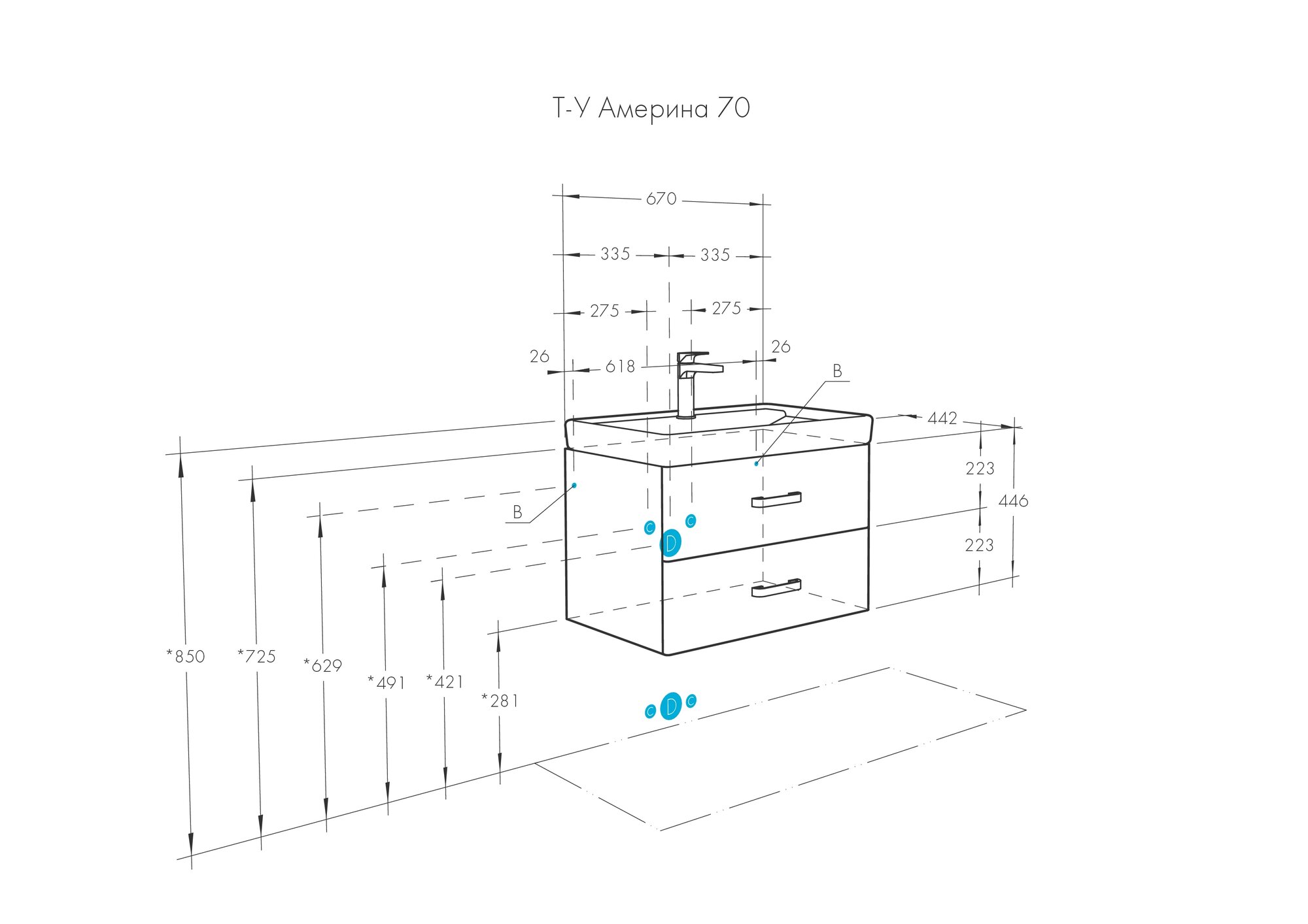 | Подходящие аксессуары | Умывальник "Тигода 70" (1WH302083) (арт.1249323) Раковина "Дрея" 70см (1AX013WBXX000) (арт.1249287) |