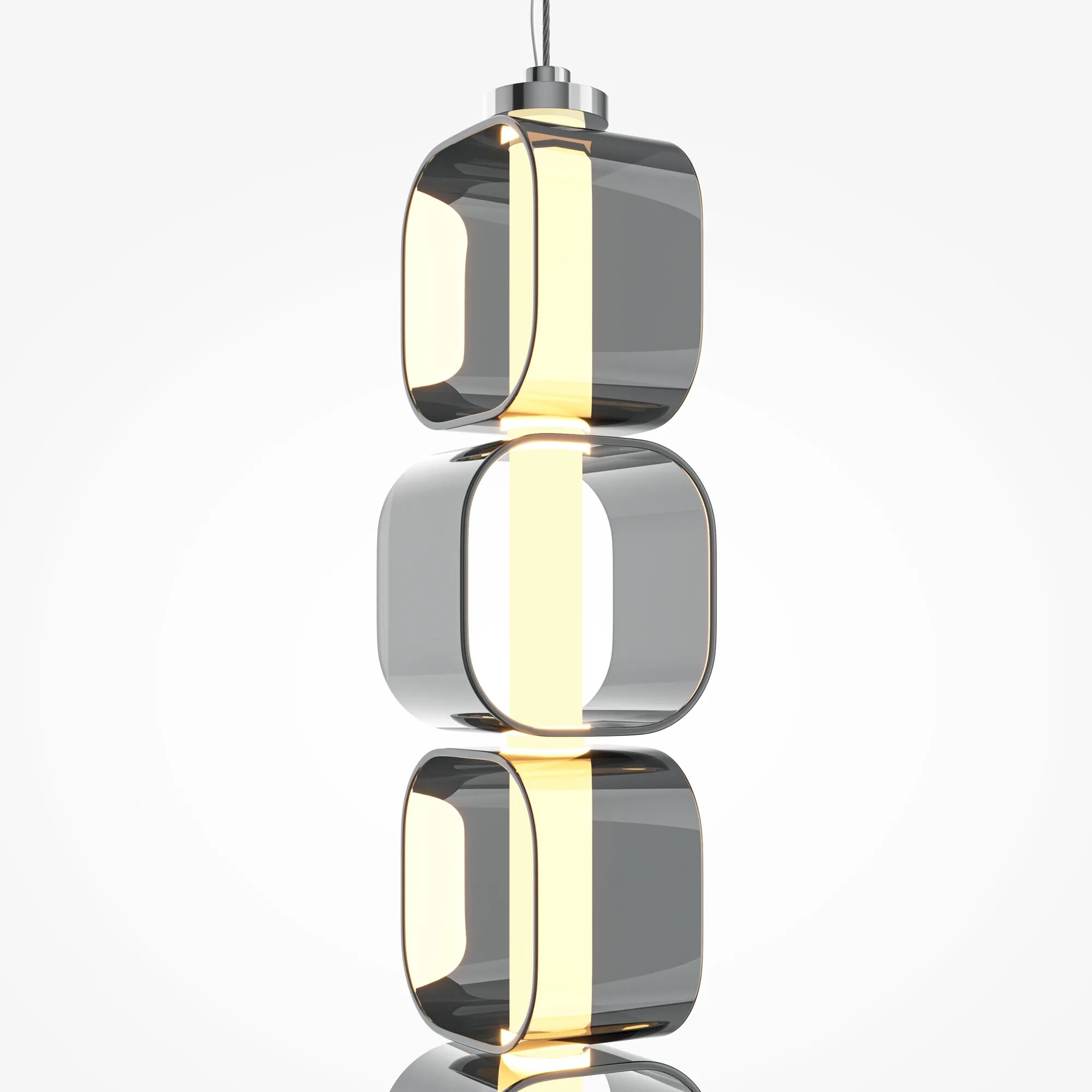 Дизайнерская серия, созданная в коллаборации с Британской Высшей школой Дизайна. Вдохновлена концепцией ритма Леонардо да Винчи. Два цветовых решения: янтарное стекло в сочетание с арматурой в черном цвете с сэнди-эффектом, серое тонированное стекло в сочетании с арматурой с глянцевым хромированным покрытием. LED-источник света скрытый матовым акриловым рассеивателем. Два типа подвесных светильников: одиночный и горизонтальный. Регулируемая высота подвеса и провод длиной 3 метра. Возможность создания композиций.